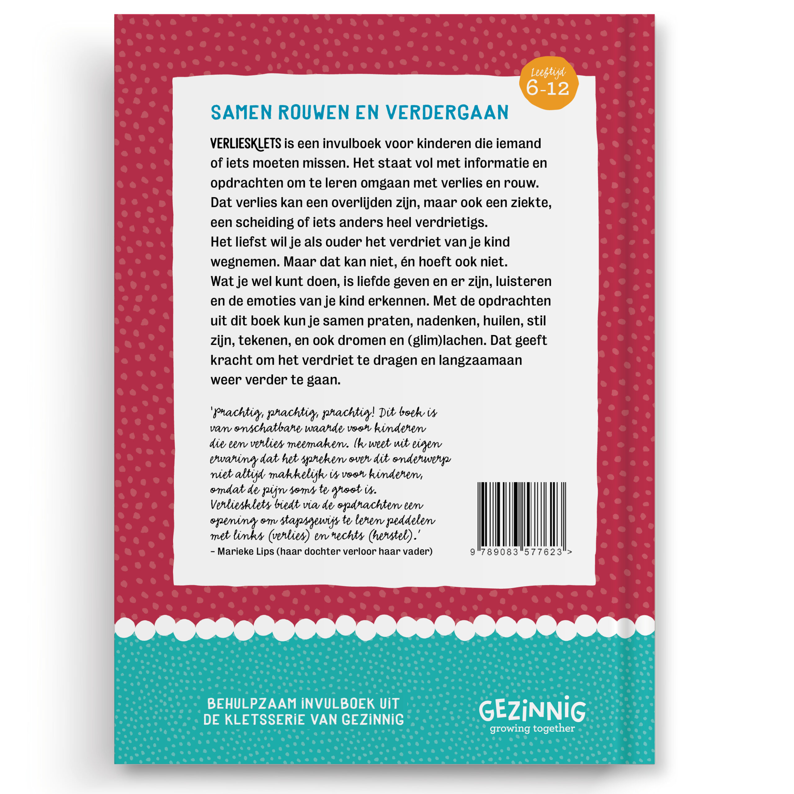‘Prachtig, prachtig, prachtig! Dit boek is van onschatbare waarde voor kinderen die een verlies meemaken. Ik weet uit eigen ervaring dat het spreken over dit onderwerp niet altijd makkelijk is voor kinderen, omdat de pijn soms te groot is. Verliesklets biedt via de opdrachten een opening om stapsgewijs te leren peddelen met links (verlies) en rechts (herstel)’ – Marieke Lips (haar dochter verloor haar vader)