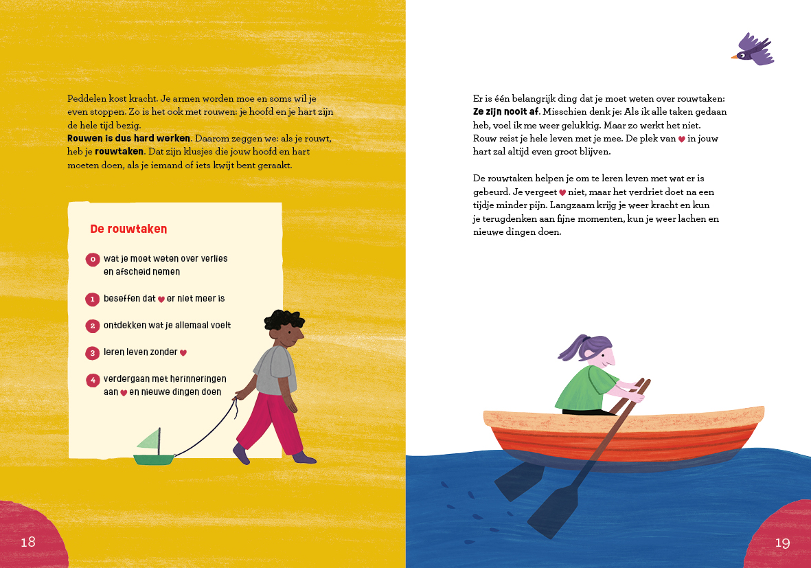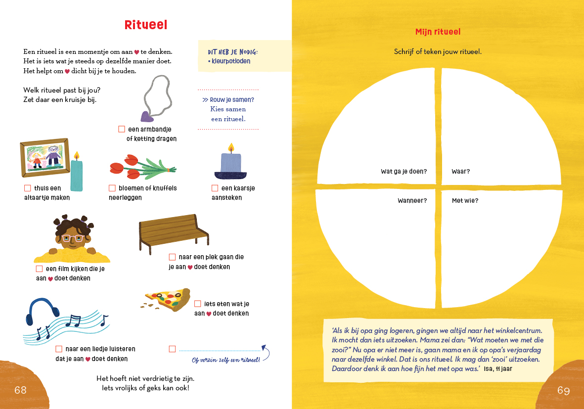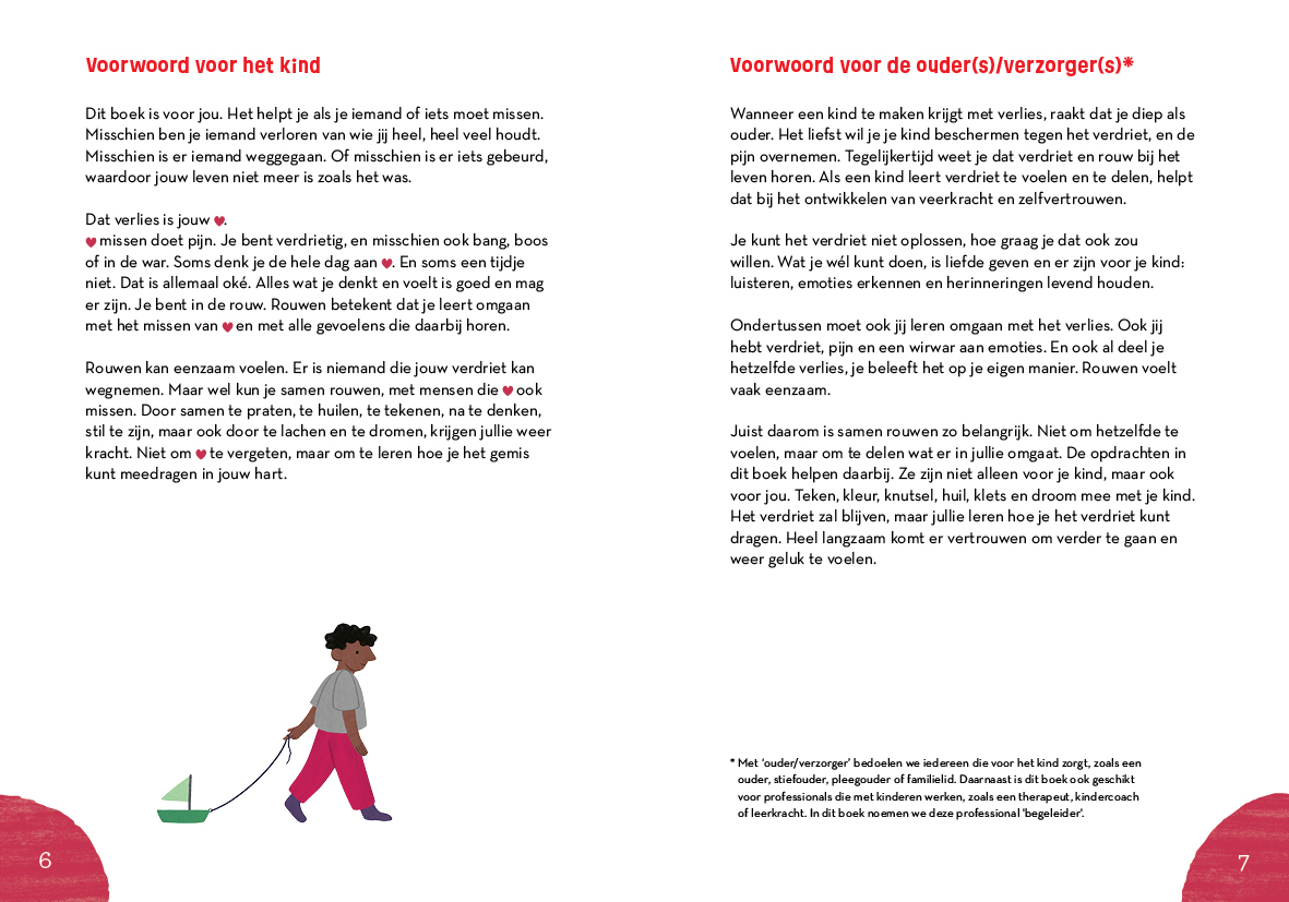 Het liefst wil je als ouder het verdriet van je kind wegnemen. Maar dat kan niet, én hoeft ook niet. Wat je wel kunt doen, is liefde geven en er zijn, luisteren en de emoties van je kind erkennen. Met de opdrachten uit dit boek kun je samen praten, nadenken, huilen, stil zijn, tekenen, en ook dromen en (glim)lachen. Dat geeft kracht om het verdriet te dragen en langzaamaan weer verder te gaan.